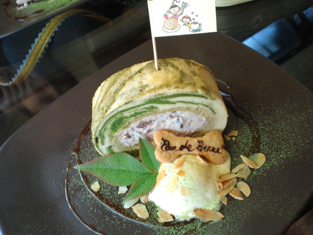 小豆クリームのマーブル抹茶ロールです。