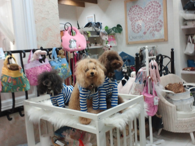 Queue ペットショップさんセレクトされたグッズや洋服がたくさん並んでいます。トリミングサロンもありお友達がこちらでトリミングされています。GGのコーナーもあります。今日はANDYくん結心ちゃんとGGのパーカージャケットがオソロで可愛かったわぁ♪リュウティンも買えば良かったなー