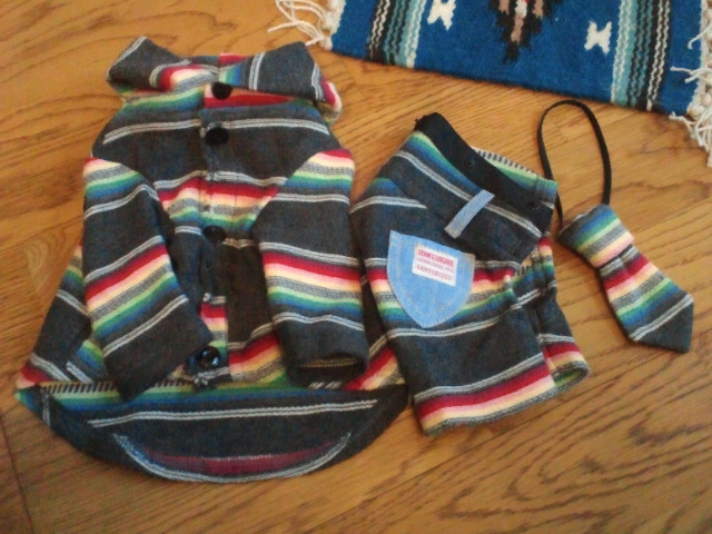 Remake DENIMDUNGAREE三点セット DENIMDUNGAREEの今季の新品カーデを買いまして作れるだけ作って貰いました♪元のカーデみたいに作って貰ったカーデ、ダンガリー生地をベルトループ、ポケットに使って貰いパンツを作って貰いました。後、残り生地でネクタイも。可愛い可愛い三点セットです。