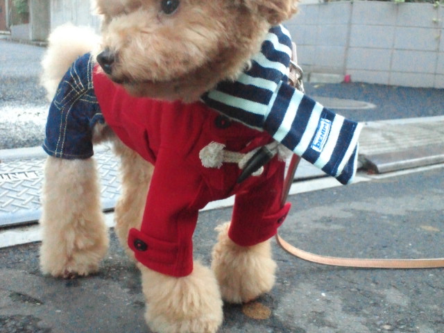 今日のリュウティン♪ 12/9金曜日PUERTO ダッフルBulBu-Bu サロペット下が濡れてるけど昨日散歩出来なかったしSCへ。ひつこくニホイ確認して張り切っていたわ(笑)ニホイ嗅ぐだけでチッチしない率高いからメンドクサイ(笑)このPUERTOなの?GGなの?とわからないダッフルですが今みたいに2hとかなかった時だから2なの。3は大きすぎて買えなかった…私は大きいよりやや小さい方をchoiceするのー大きい服大嫌いなんで。でも身幅は良いけどややツンツルテン(笑)