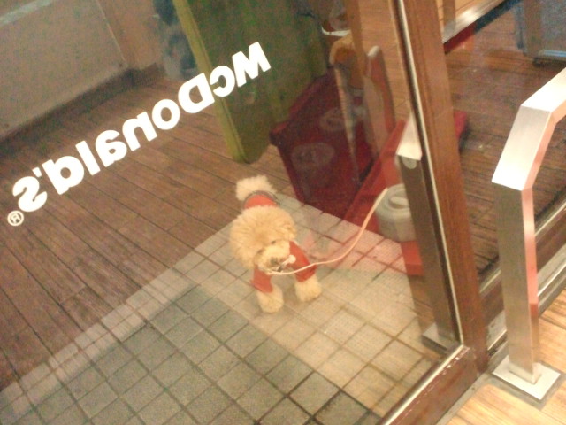 リュウティン納得いかないらしい お友達に全く会えず納得いかないリュウティン…下乾いてないし寒いし今日はみんなパスなんだよーと言っても納得出来ないリュウティン。じゃママとお茶する?と聞いたら張り切ってマックに行くワンコ様なリュウティン(笑)ママは塩なしで!とポテト頼んであげたと言う(笑)全部あげませんよー(笑)良いコは真似しないでねっ^_^;