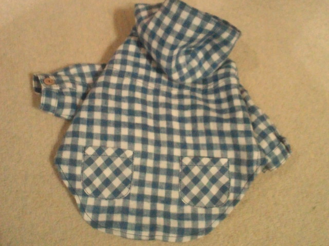MO'SORmadeパーカシャツ背中側 ポッケも付けて貰いました。中にはTシャツ生地を挟んで貰いファスナップも付けてあるのでこのままボトムと繋げられます。可愛いパーカシャツまたお願いしようかな?気に入りました♪
