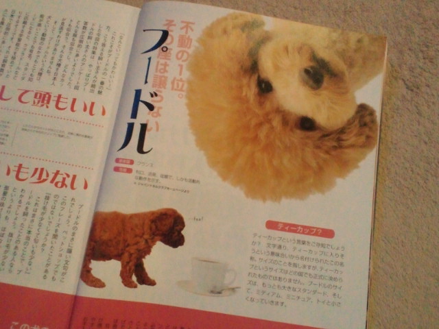不動の1位はプードルだって! いやんリュウティン可愛いっママは本屋で倒れそうになり買いましたー蔦谷の人にコレワタシのコなんです!とか言いたくなりました(爆)でも言わなかった(笑)は?って言われたらかなしーし(笑)