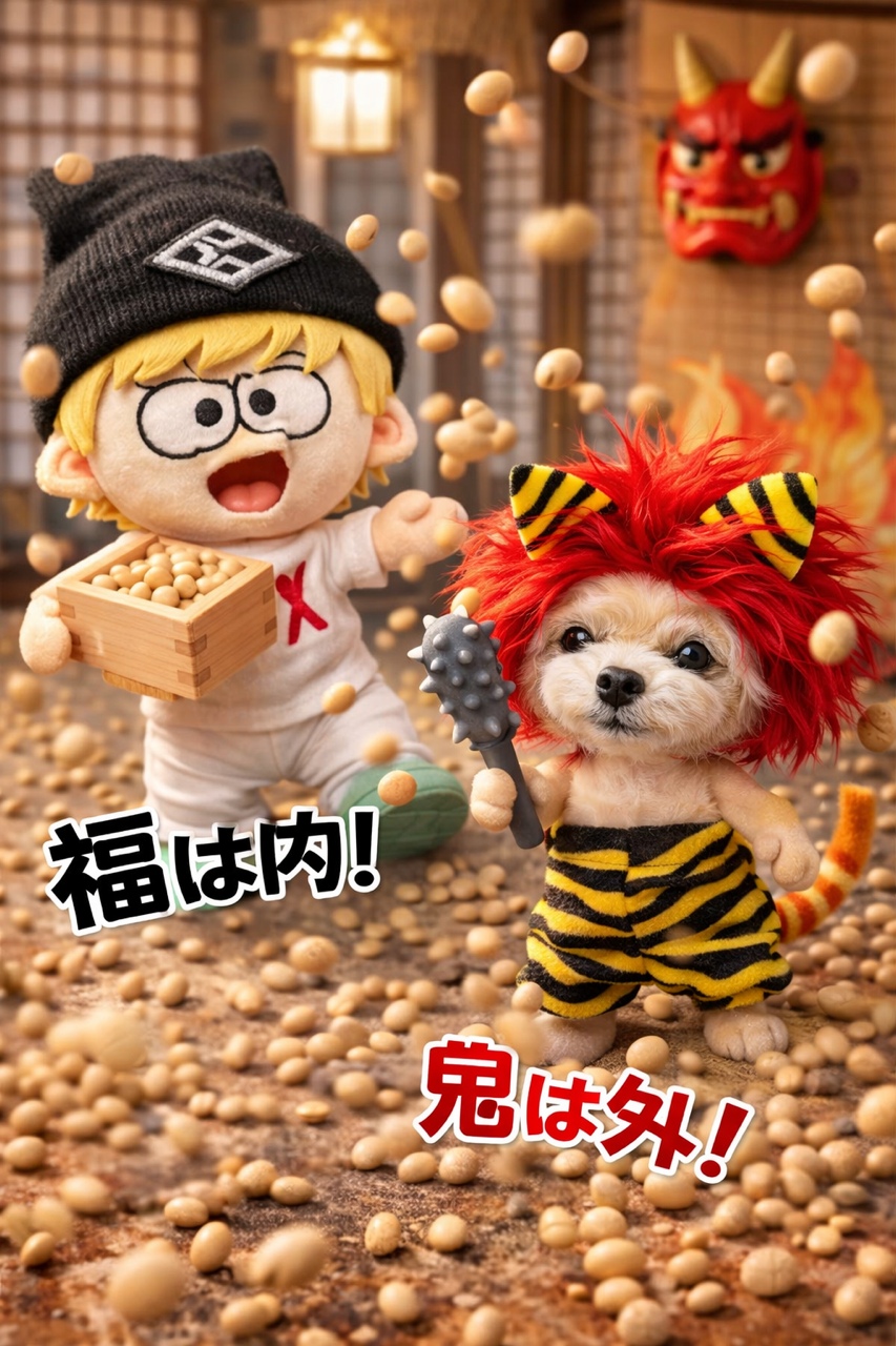 しっかり豆まきしてね!